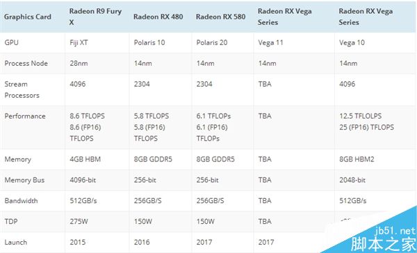 目前已知的其他信息還有,Vega顯卡定名為RX Vega,集成HBM2顯存。最高容量提供8GB。