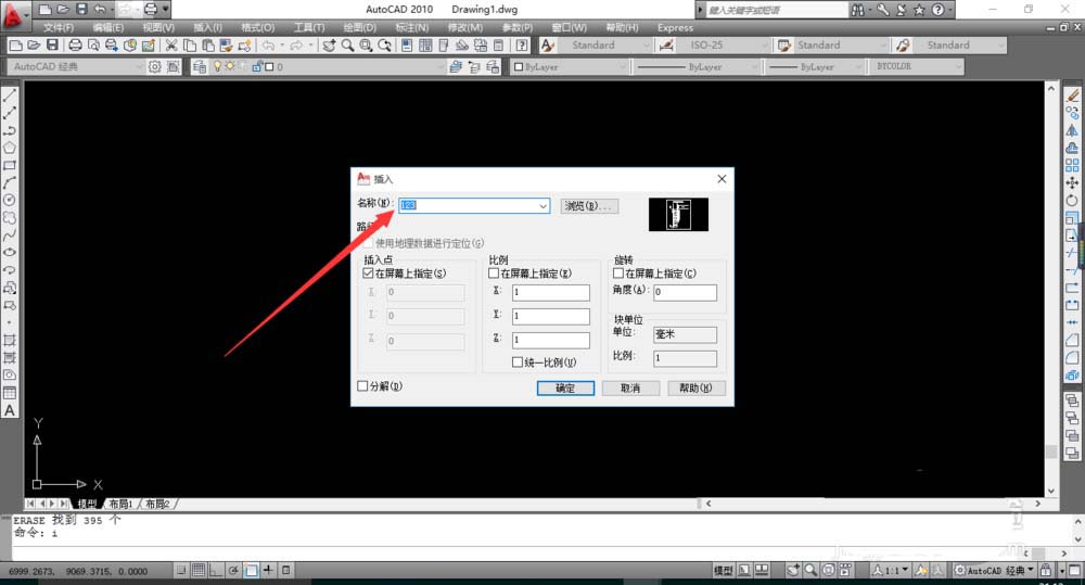5、輸入命令“i”,回車,插入之前做的外部塊。