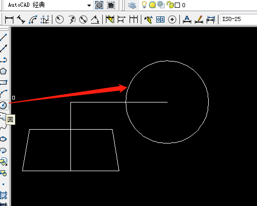 3、用圓工具,長直線的右端點為圓心繪制一個圓。