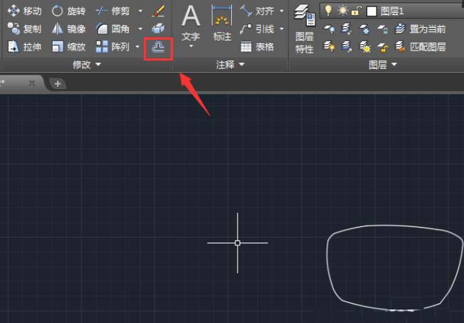 3、畫好眼鏡片的輪廓線之后,再在修改里找到偏移選項,如圖所示: