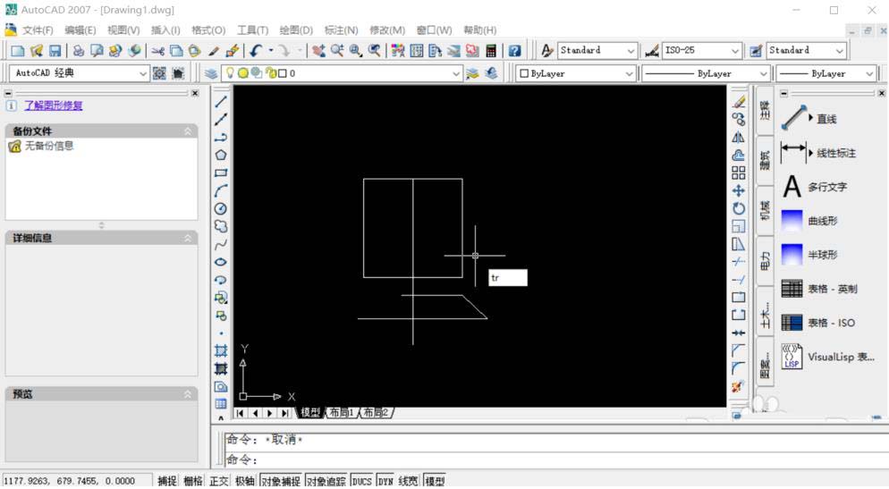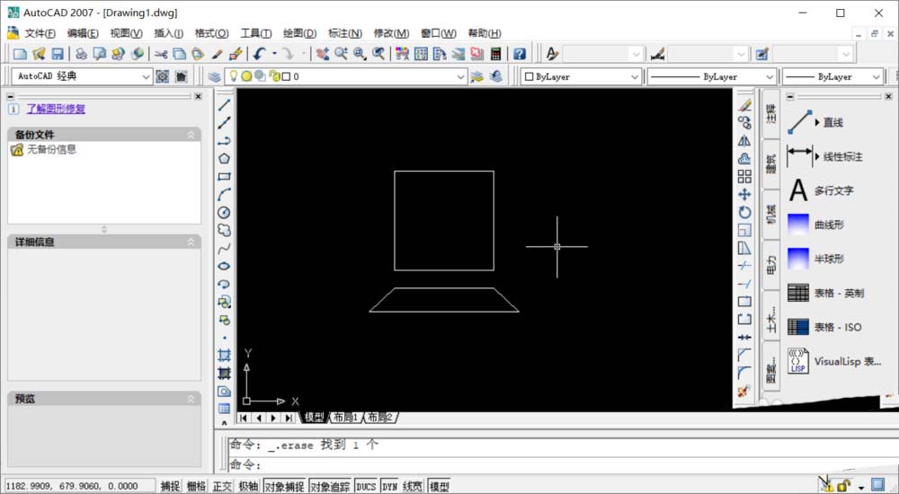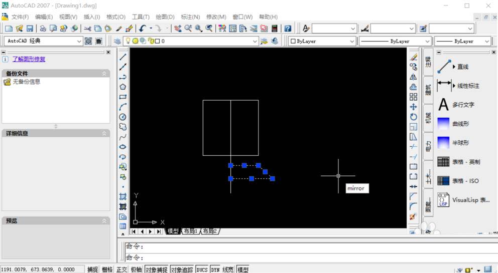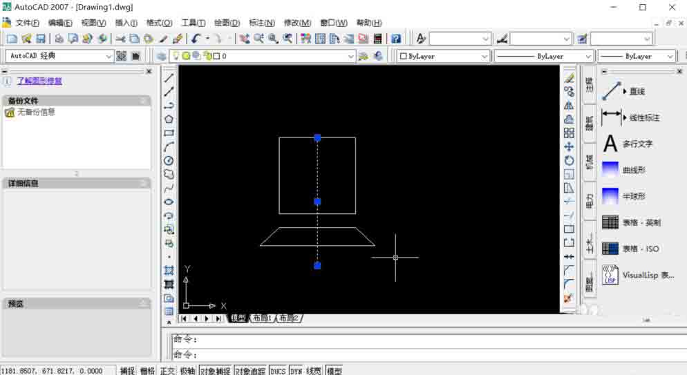 5、選擇剛剛繪制的半邊梯形,使用mirror命令,有中線部分鏡像出一個(gè)完整的梯形,由此一個(gè)顯示器+一個(gè)鍵盤的簡易電腦示意圖生成了。