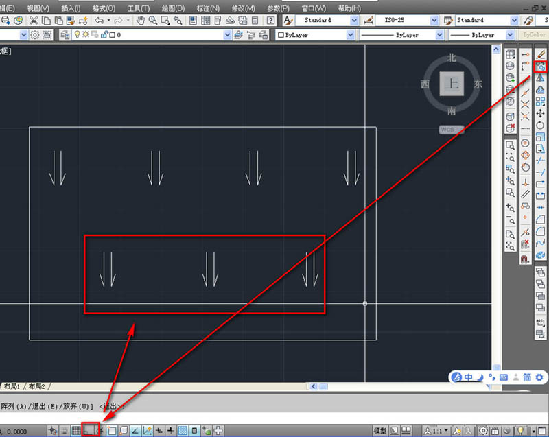 7、再次使用復(fù)制工具,關(guān)閉正交開(kāi)關(guān),復(fù)制下層的三個(gè),如下圖。