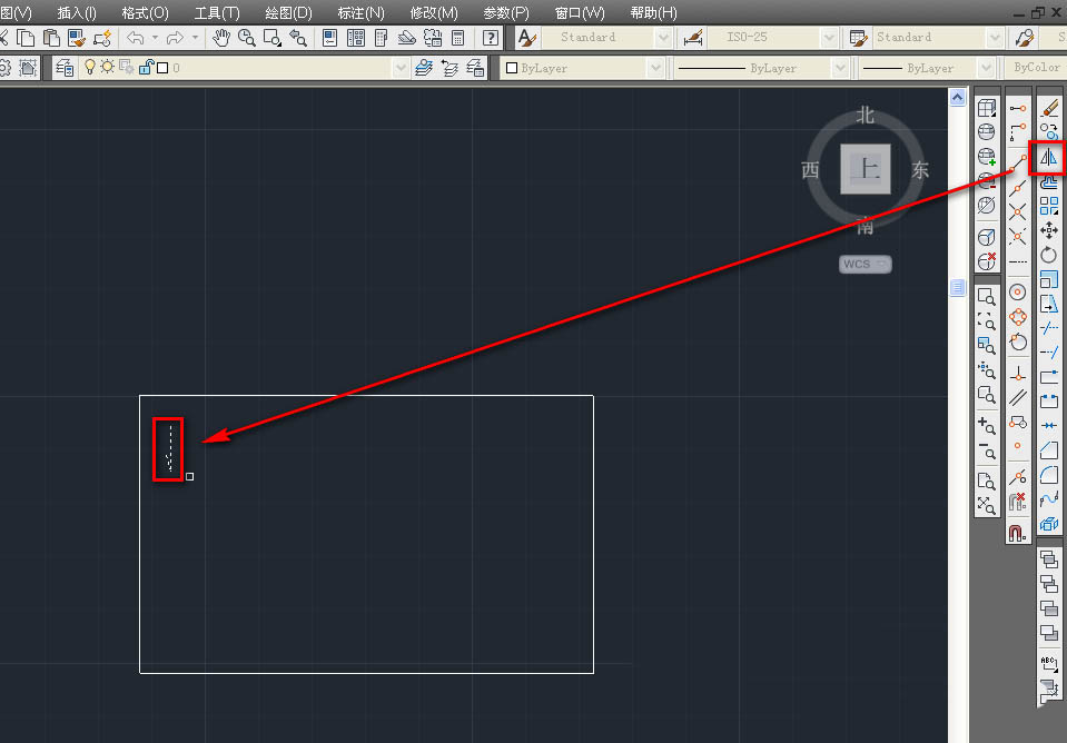 4、選擇合適的鏡面,鏡像出另一個(gè)單箭頭,如下圖。
