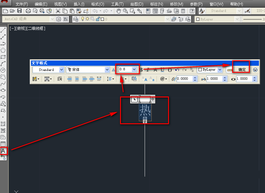 2、使用文字工具,在輔助線的位置輸入熱字,調整大小,如下圖。