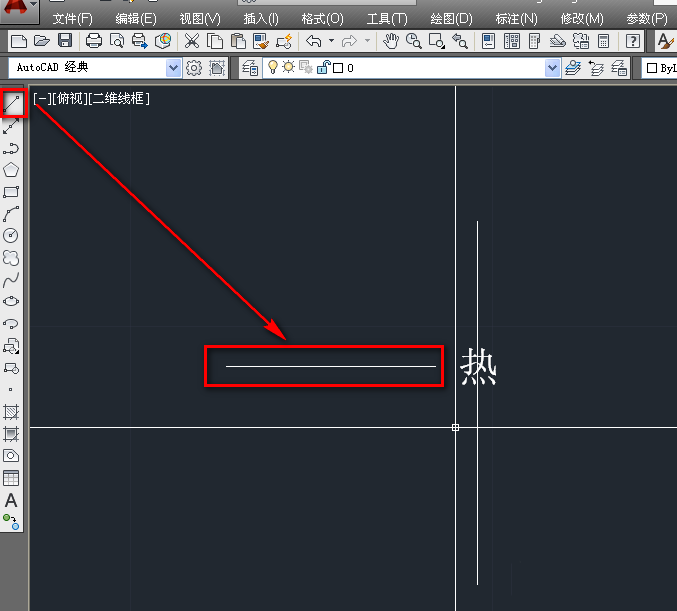 3、使用直線工具,在輔助線的左側繪制一條橫線,如下圖。