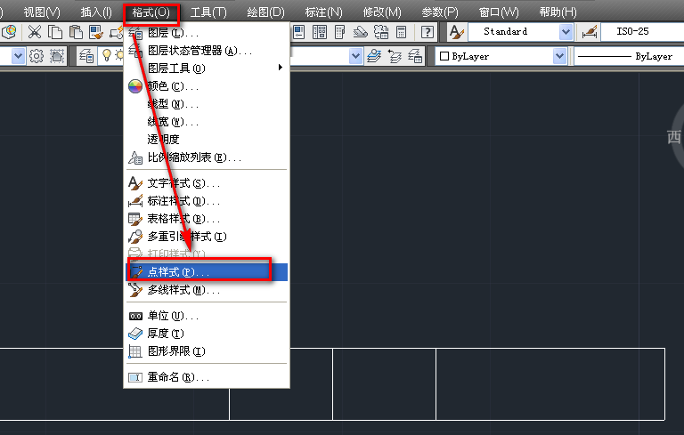 7、選中剩余的豎線,點擊菜單欄的繪圖,如下圖。