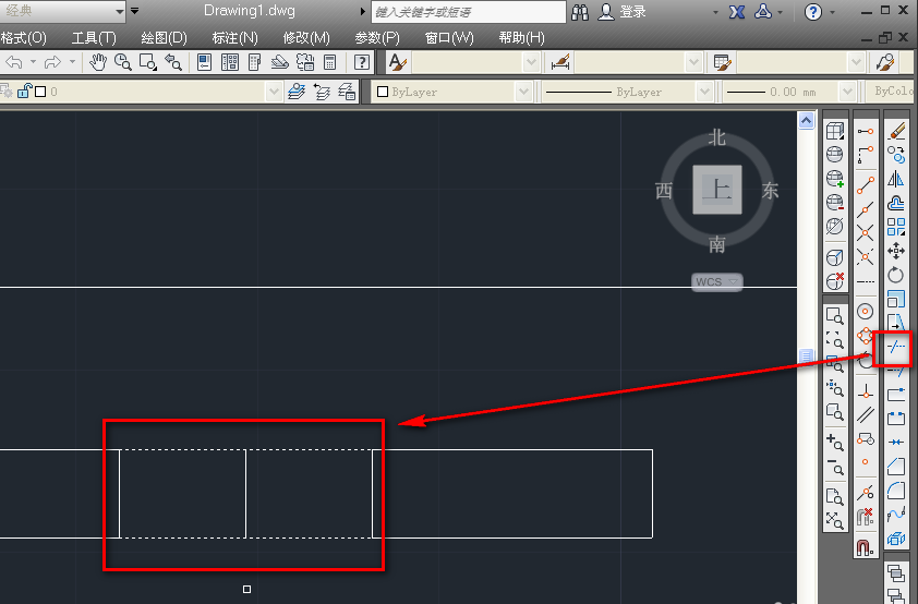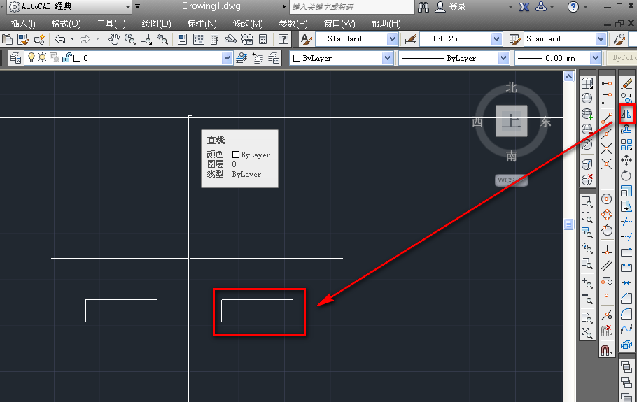 3、使用鏡像工具,以豎線為鏡面鏡像一個矩形,如下圖。