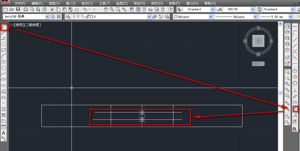 1、打開cad,使用直線工具繪制一條豎直的直線,圖上畫了兩條,其中水平的沒有用到。如下圖。