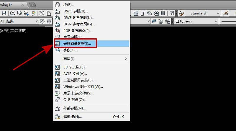 2、選擇“光柵圖像參照”,如圖所示。