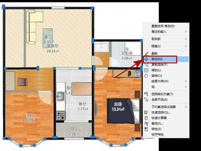 7、畫完后,選中線條,點擊右鍵,然后選擇“移動”,如圖所示。