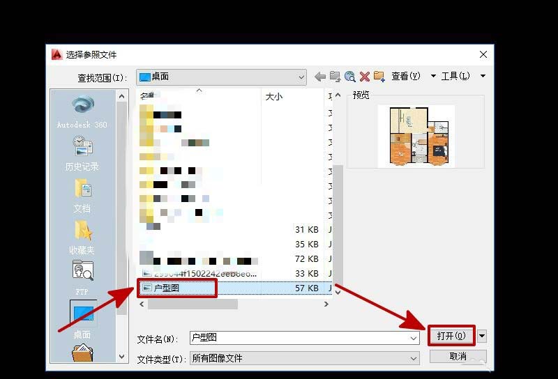 3、通過路徑找到“戶型圖”,然后點擊“打開”,如圖所示。