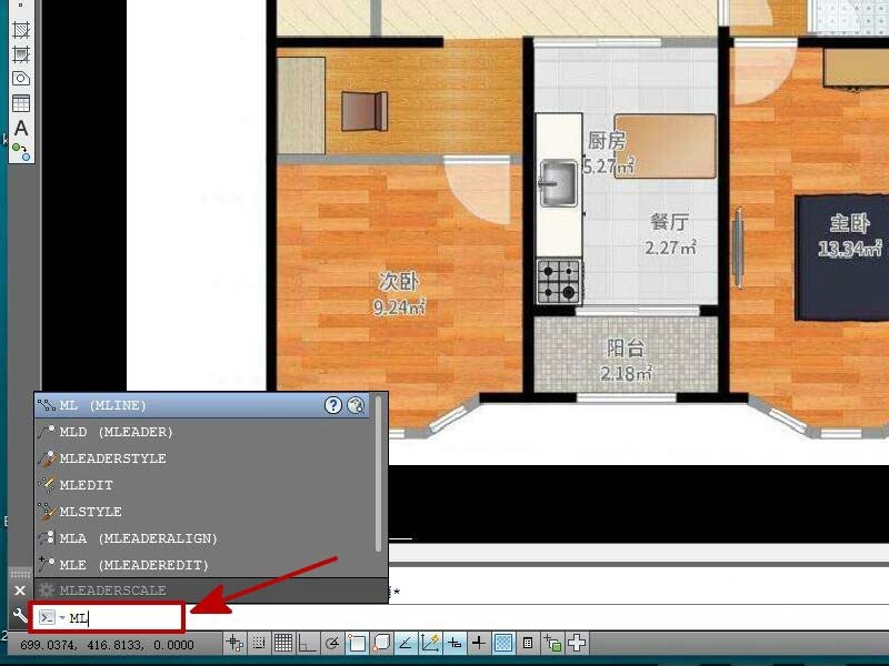 4、在命令欄里輸入“ml”,然后在輸入“s", 設置線寬比例為2,沿著墻的中線畫出戶型圖外邊框。