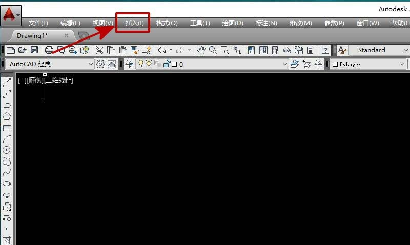 1、首先,我們打開CAD軟件,點擊“插入”,如圖所示。