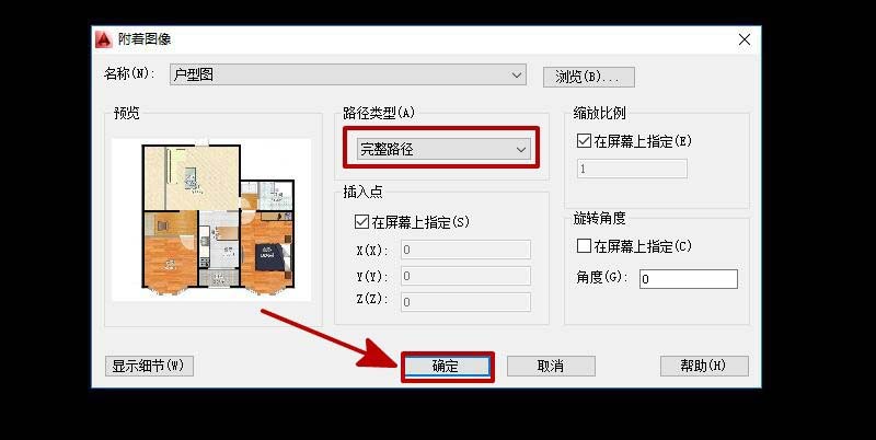 2、在對話框內選擇“完整路徑”,點擊“確定”。