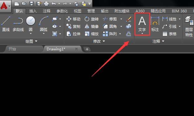 2、選擇圓形命令之后我們在繪圖區里繪制出一個圓形,然后再在菜單里找到文字選項,如圖所示:
