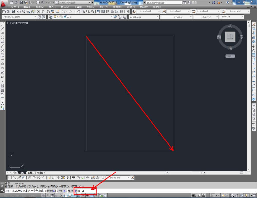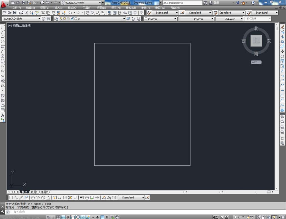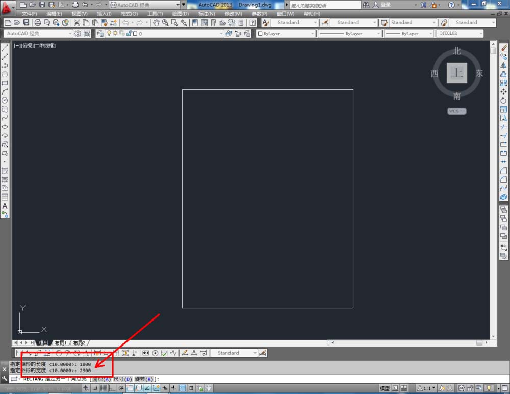 2、點擊【矩形工具】,在命令欄輸入:d并按下空格鍵確認后,繪制出一個1800*2300mm的矩形;