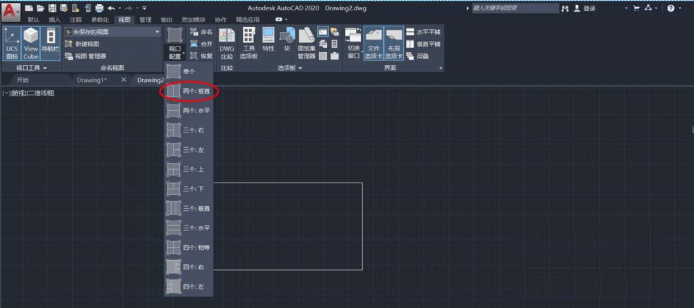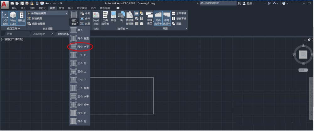 4、點(diǎn)擊"視圖"中的“視口配置”