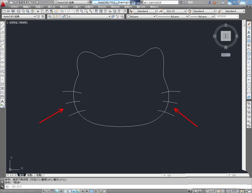 以上就是CAD繪制卡通造型的hellokitty貓的教程 ,希望大家喜歡,請繼續(xù)關(guān)注武林網(wǎng)。
