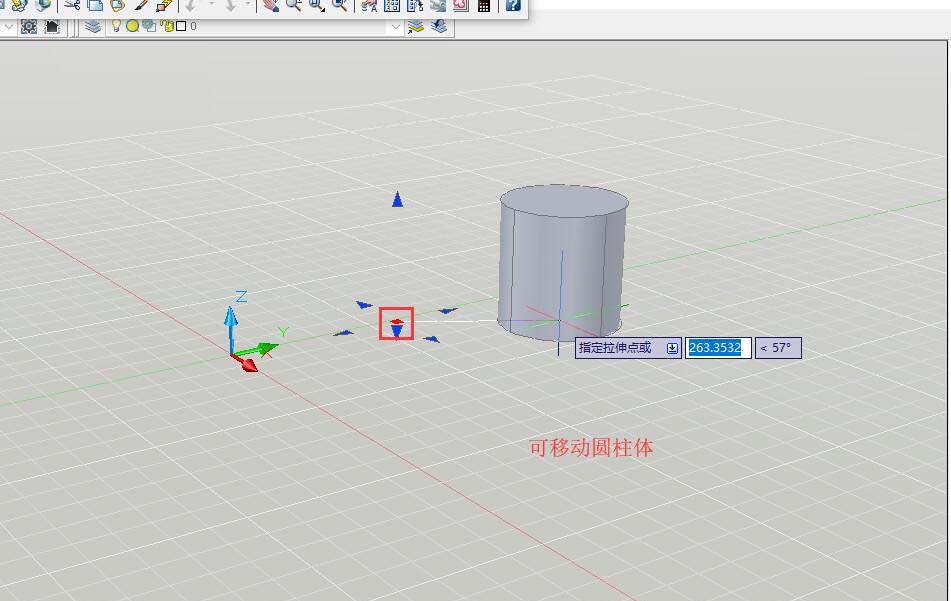 4、單擊下表面中間藍點,可移動圓柱體,如圖所示。