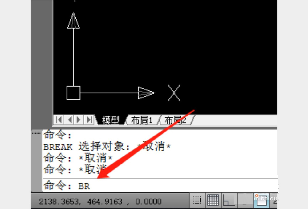 3、執行后選擇對象,然后選擇打斷的第二個點