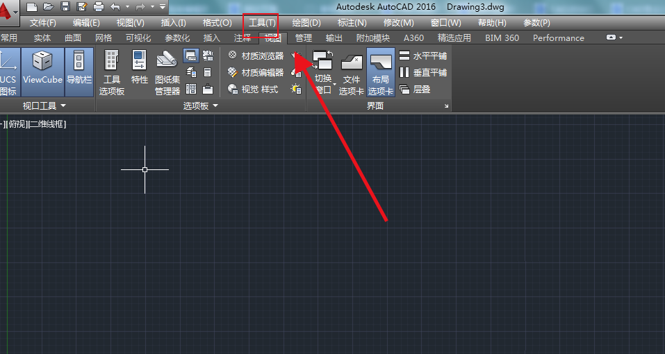 1、打開CAD后,發現上方的菜單欄中沒有“工具”。
