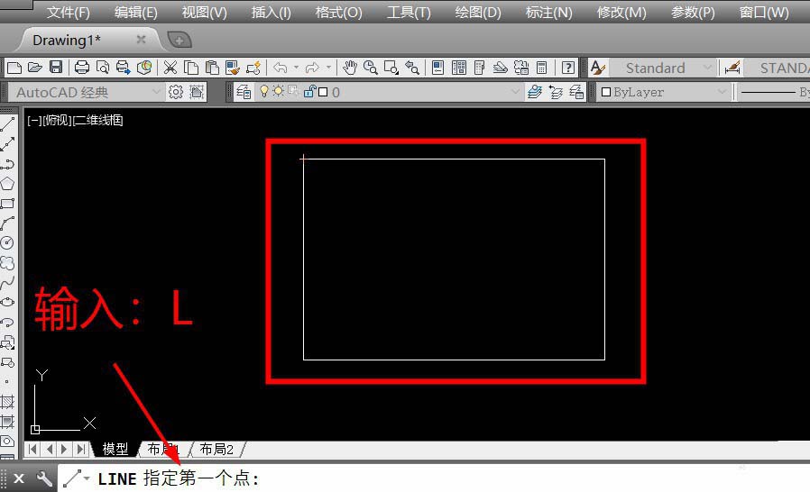 4、鼠標點擊,放置矩形,輸入命令:L,按下空格鍵。