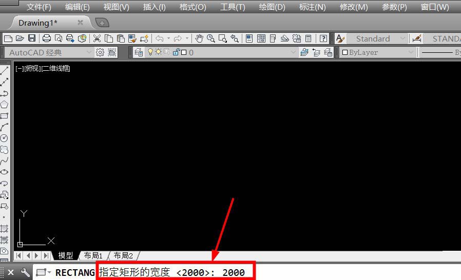 3、輸入矩形長度,按下空格鍵;輸入矩形寬度,按下空格鍵。