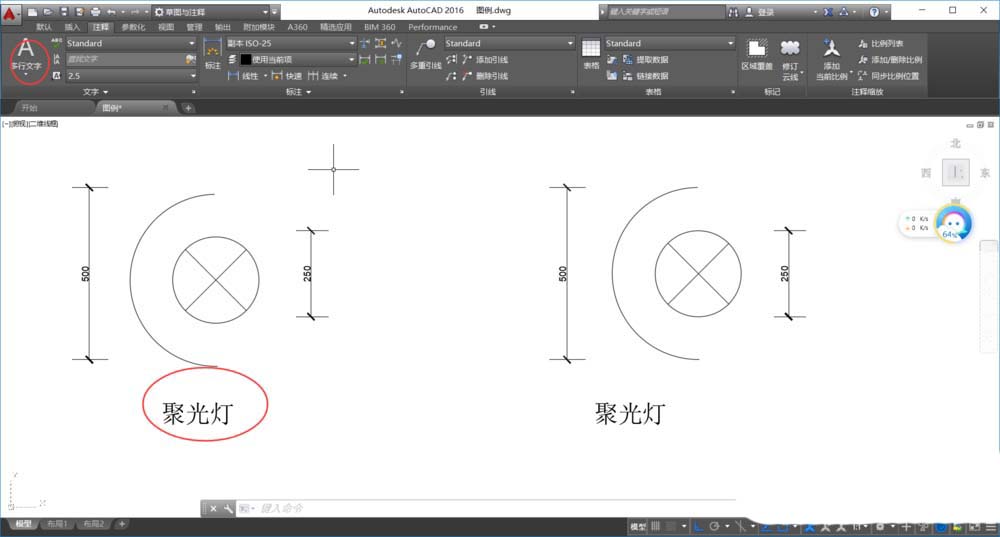 11、最后進行注釋,選擇多行文字輸入聚光燈即可。