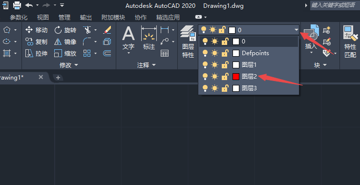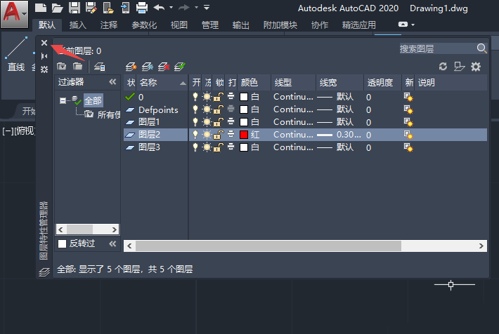1、先打開AutoCAD2020,然后點擊圖層特性;
