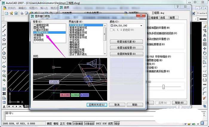 以上就是CAD三維透視投影設置柵格輔線顏色的教程,希望大家喜歡,請繼續關注武林網。