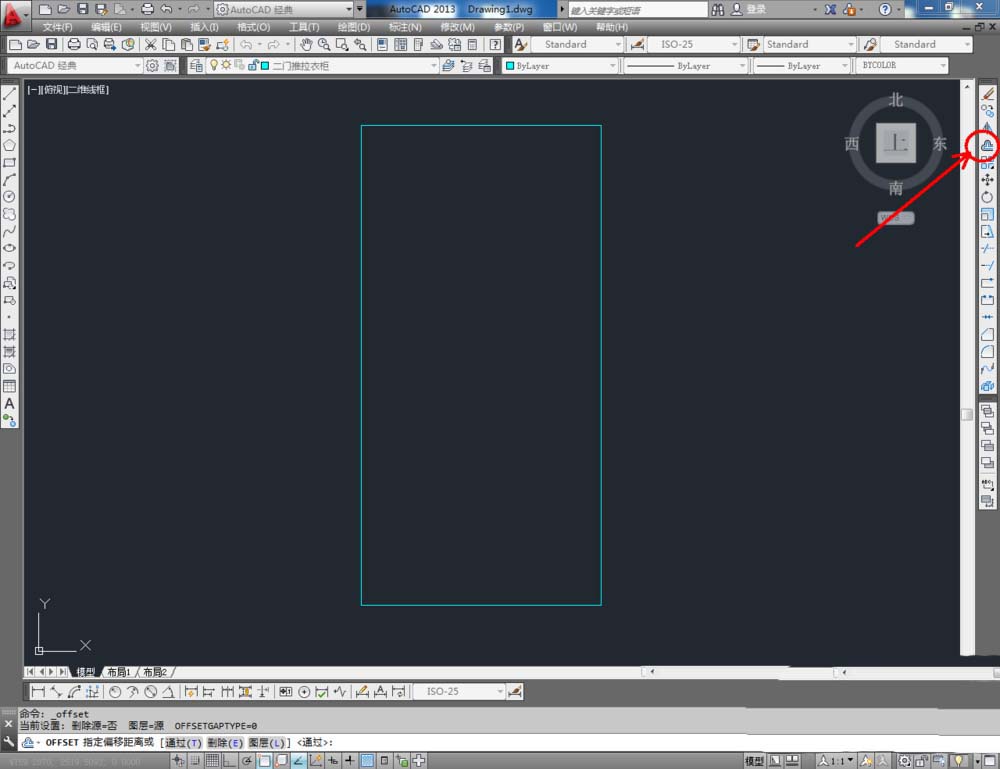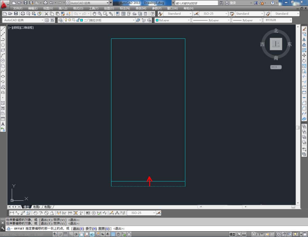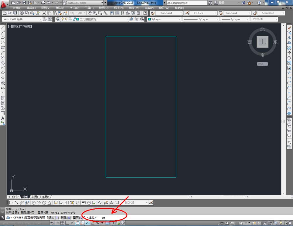 3、點擊右邊工具欄中的【偏移工具】,在命令欄輸入偏移數值:80后,對底邊進行向上偏移。在命令欄輸入偏移數值:50后,對頂邊進行向下偏移(如圖所示);
