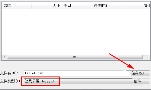 3、在打開的“輸出數據”對話框中,選擇保存目錄,定義文件名,文件類型選擇“逗號分割(*.csv)”,單擊【保存】按鈕。