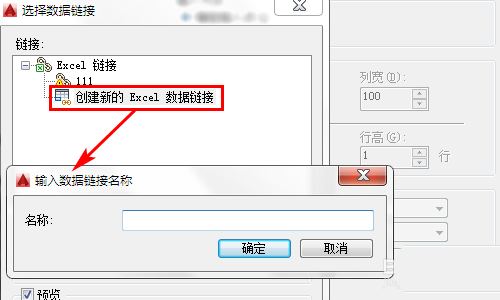 5、在“選擇數據鏈接”對話框中,選中【創建新的 Excel 數據鏈接】,在彈出的“輸入數據鏈接名稱”對話框中輸入名稱,單擊【確定】按鈕。