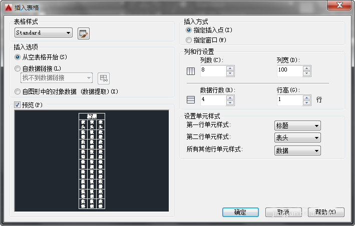 1、要想將AutoCAD中的表格輸入到Excel,首先要保證AutoCAD中的表格是真的表格,就是通過下圖所示的“插入表格”對話框插入的表格。
