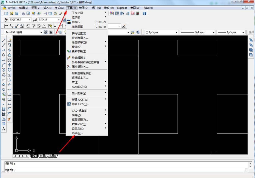 2、再點擊圖中工具選項下的選項按鈕,如圖所示;