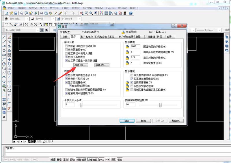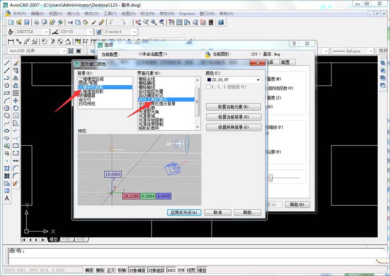 cad怎么設置二維模型空間設計工具欄提示顏色?