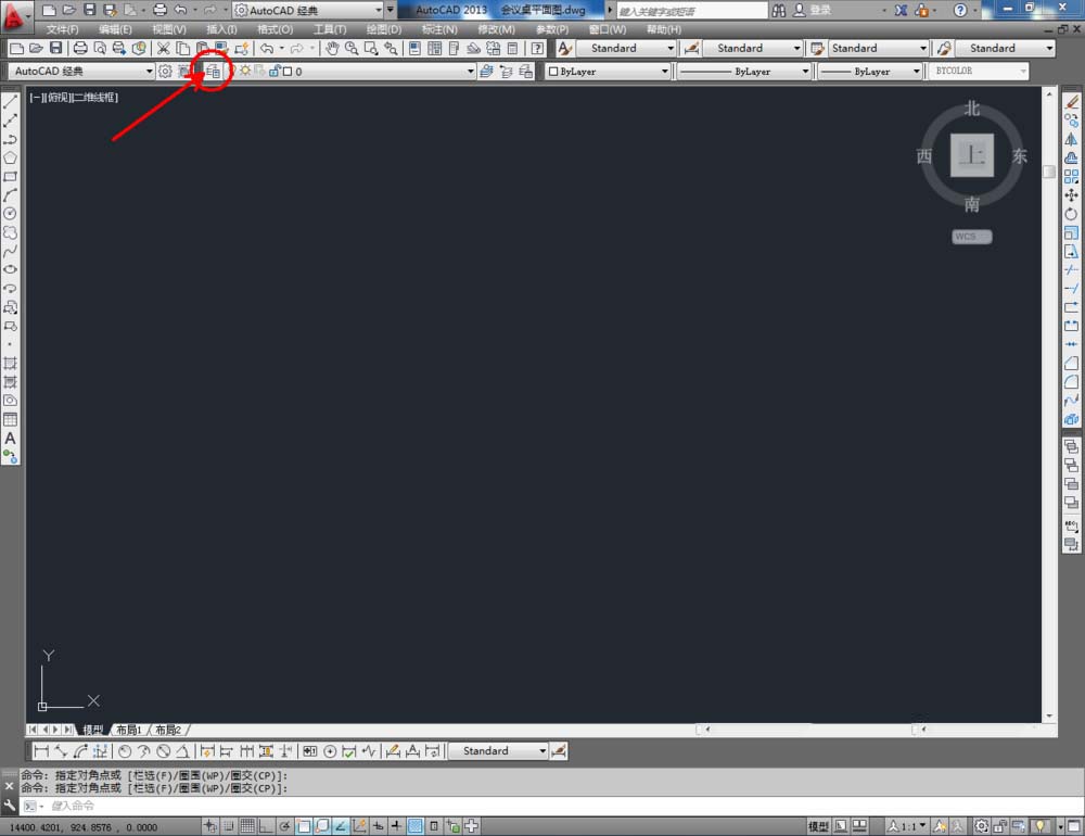 1、打開AutoCAD 2013軟件,點擊【圖層特性管理器】,點擊【新建圖層】,將圖層命名為:會議桌。點擊色塊,按圖示設置一個圖層顏色,完成會議桌圖層的設置(如圖所示);