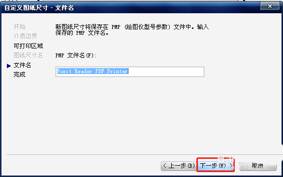 8、彈出【自定義圖紙尺寸-文件名】對(duì)話框,可直接單擊【下一步】。