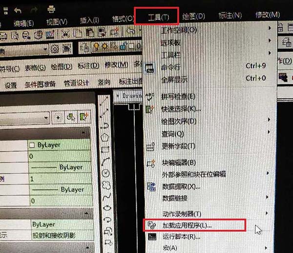 3、在任務菜單欄里選擇“工具”-”加載應用程序“。