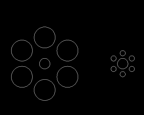 3、將2倍大小的圓圍繞左側圓心,作圓周陣列,陣列6個。