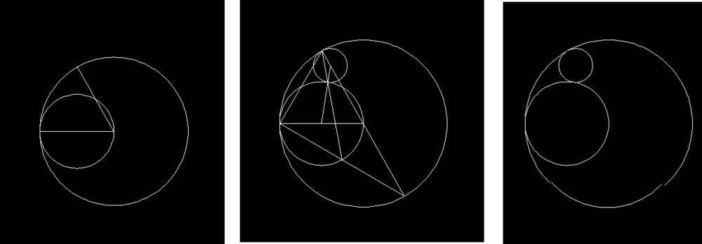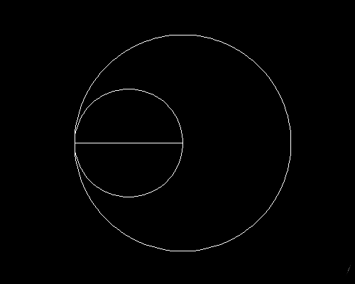 3、畫風火輪小圓。以輪廓圓圓心為起點,做60°方向半徑。畫風火輪小圓,要求與輪廓圓及大圓同時相切。繪圖過程輔助線如圖所示。