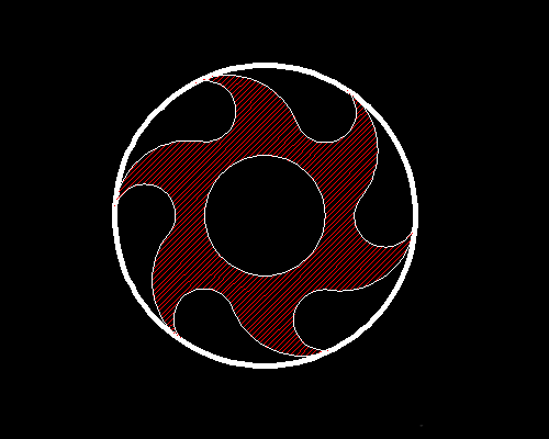 4、修剪、陣列。修剪保留大小圓外側部分,圓周陣列6個。添加中心圓,基本繪圖就完成了。