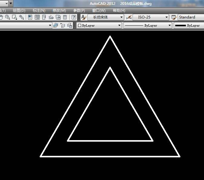 5、如下圖所示,大三角形向外偏移5mm。具體步驟:輸入O,回車,輸入5,回車,鼠標左鍵選擇大三角形,鼠標左鍵在大三角形外點一下。