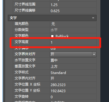 5、然后選擇文字編輯部分,更改文字高度和偏移量,是修改文字的大小和距離標注線的遠近,