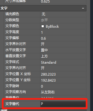 6、并在文字替代框里面填寫對應的字母代替數字顯示,或者使用公式代替,比如說P=1.0mm