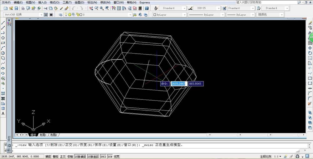 3、繪制三維網格: 選擇“繪圖”|“建模”|“網格”|“三維網格”命令(3DMESH),可以根據指定的M行N列個頂點和每一頂點的位置生成三維空間多邊形網格。M和N的最小值為2,表明定義多邊形網格至少要4個點,其最大值為256。