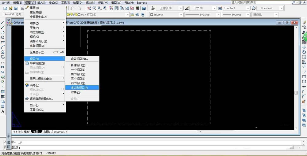 在刪除浮動視口后,可以選擇“視圖”|“視口”|“多邊形視口”命令,創建多邊形形狀的浮動視口。