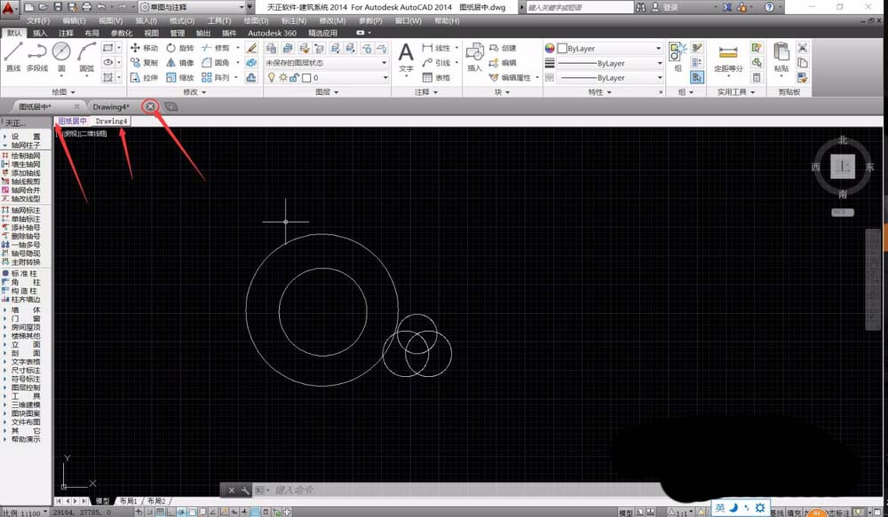 6、我們在CAD標簽欄中,可以看到所有的CAD圖紙,并且鼠標左鍵單擊即可切換到對應的圖紙,在標簽欄上還有“×”號,可以對標簽圖紙進行關閉。