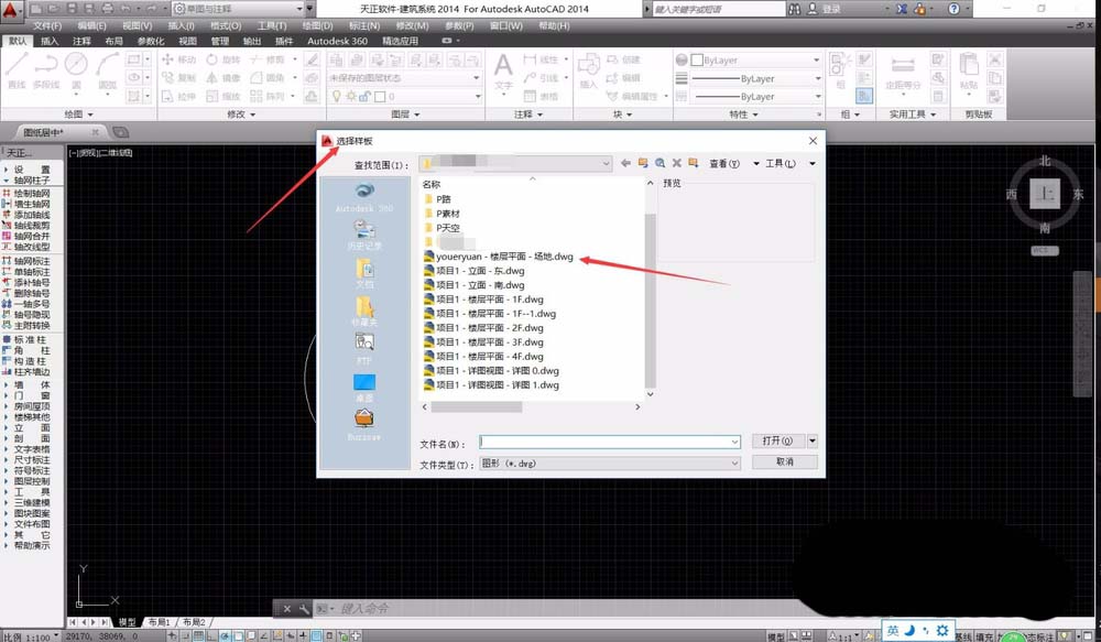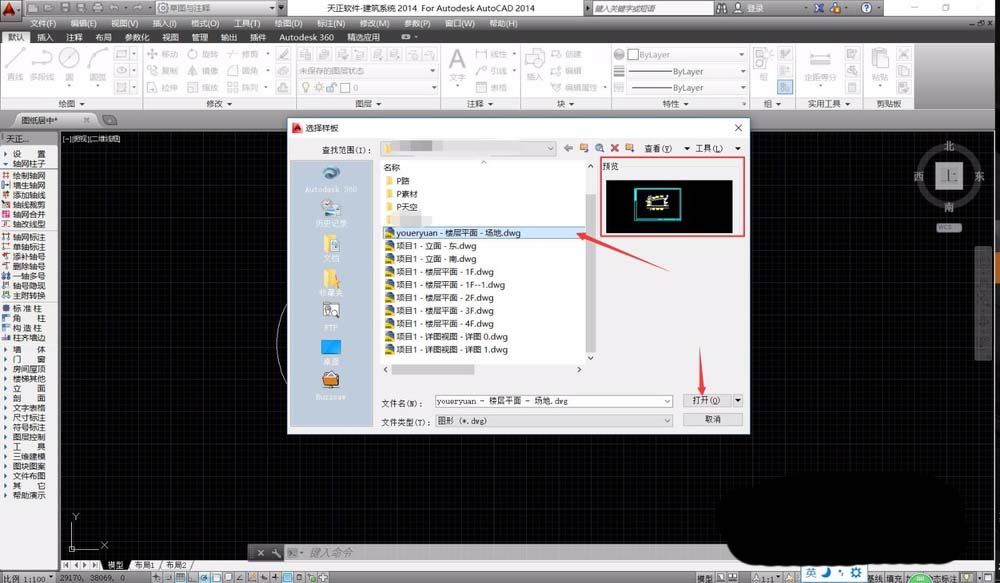 4、新建標簽頁開啟CAD圖紙,可以選擇已經(jīng)制作好的CAD圖紙,也可以直接選擇CAD模版文件,選擇文件,我們可以在右側(cè)瀏覽窗口看到圖紙的大致內(nèi)容。