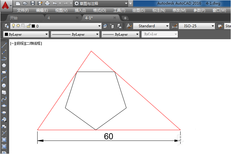 2、繪制任意大小五邊形(有1頂點(diǎn)在五邊形豎直中心線下方)。